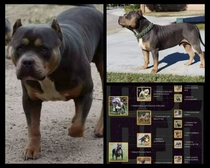 Kilo has all the traits you will need to add size, temperament and structure to your program. He is a direct son of TOPDOGBULLIES LOKI and has a beautiful blue tri coat to adorn a big body build. He is definitely a proven producer.